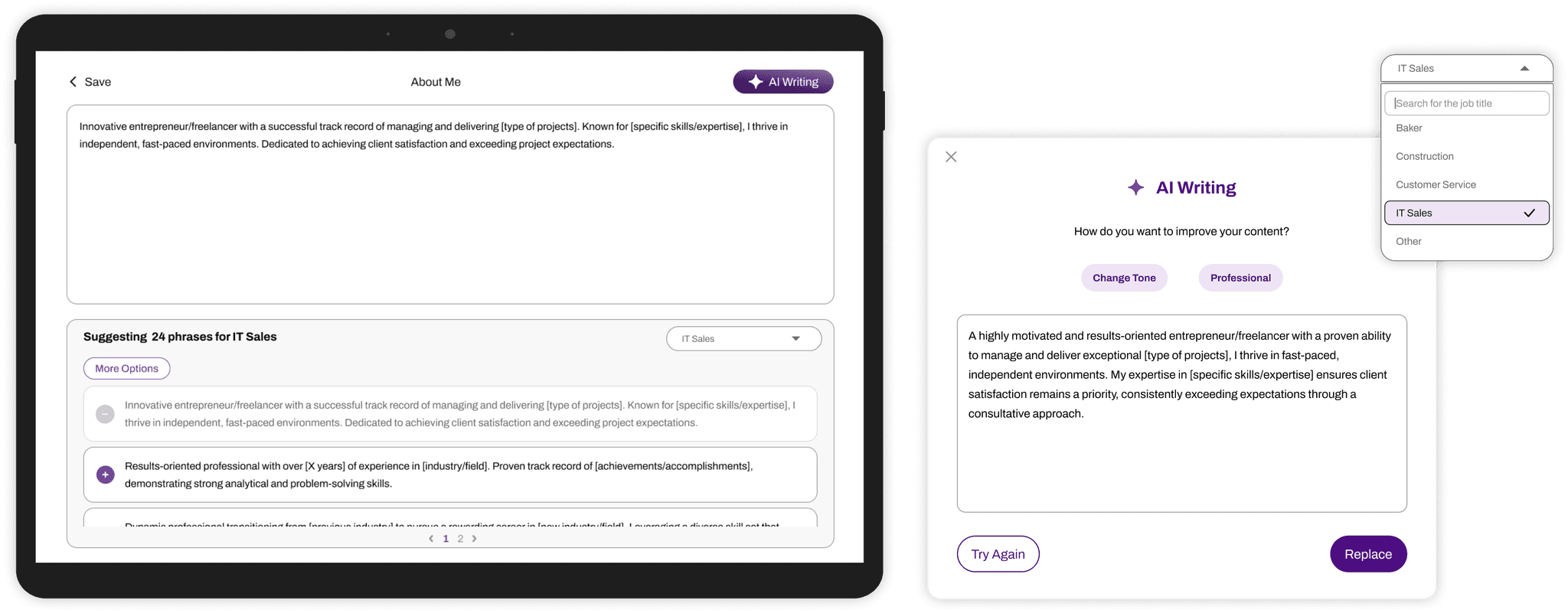 Designed an AI powered resume creation and career coaching experience for incarcerated learners, using accessible interaction patterns to improve usability and support job readiness.